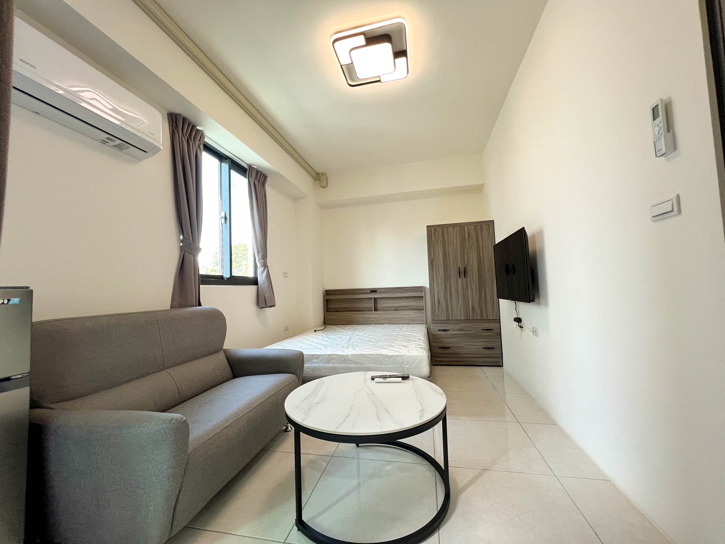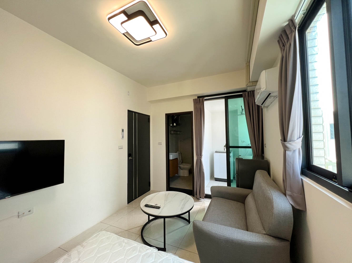 ✶ 正12米路上,磅礡落成,優質電梯套房,戶戶陽台,附洗衣機、獨洗獨曬+曬衣架、壁掛大電視有網路及機上盒、時尚防刮沙發區+圓形茶几CP值高,安全掀床收納空間、獨立筒床墊好睡眠、置物床頭小物方便取用、衣帽鏡大衣櫥、冷氣、上下雙門冷凍冷藏冰箱、浴室洗手台櫃、電熱水器及大台飲水機;房間格局方正,採光通風佳,社區獨立出入、電子密碼鎖、公共空間監控系統安全無虞。