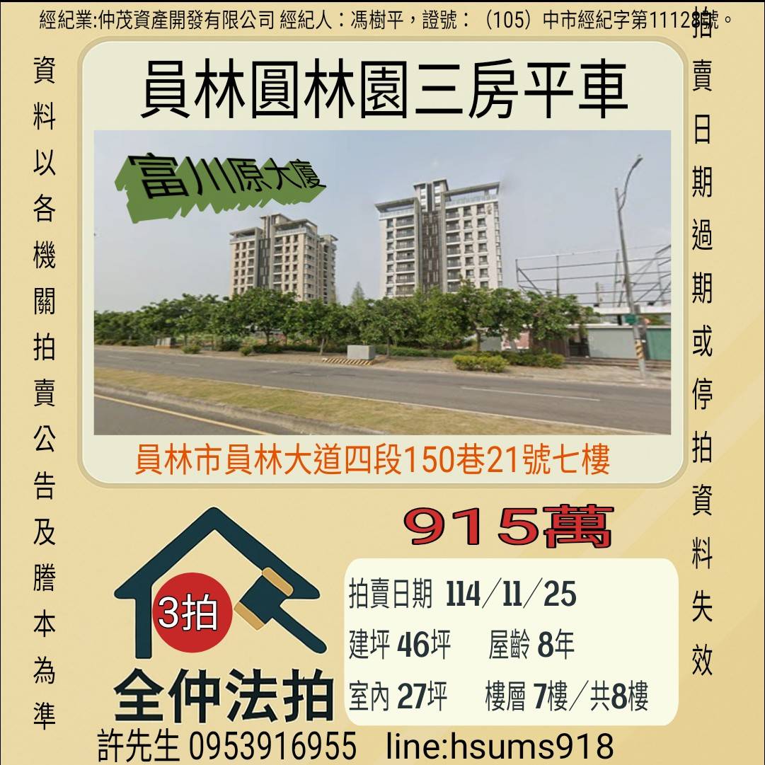 經紀人:馮樹平,證號:(105)中市經紀字第11128號。