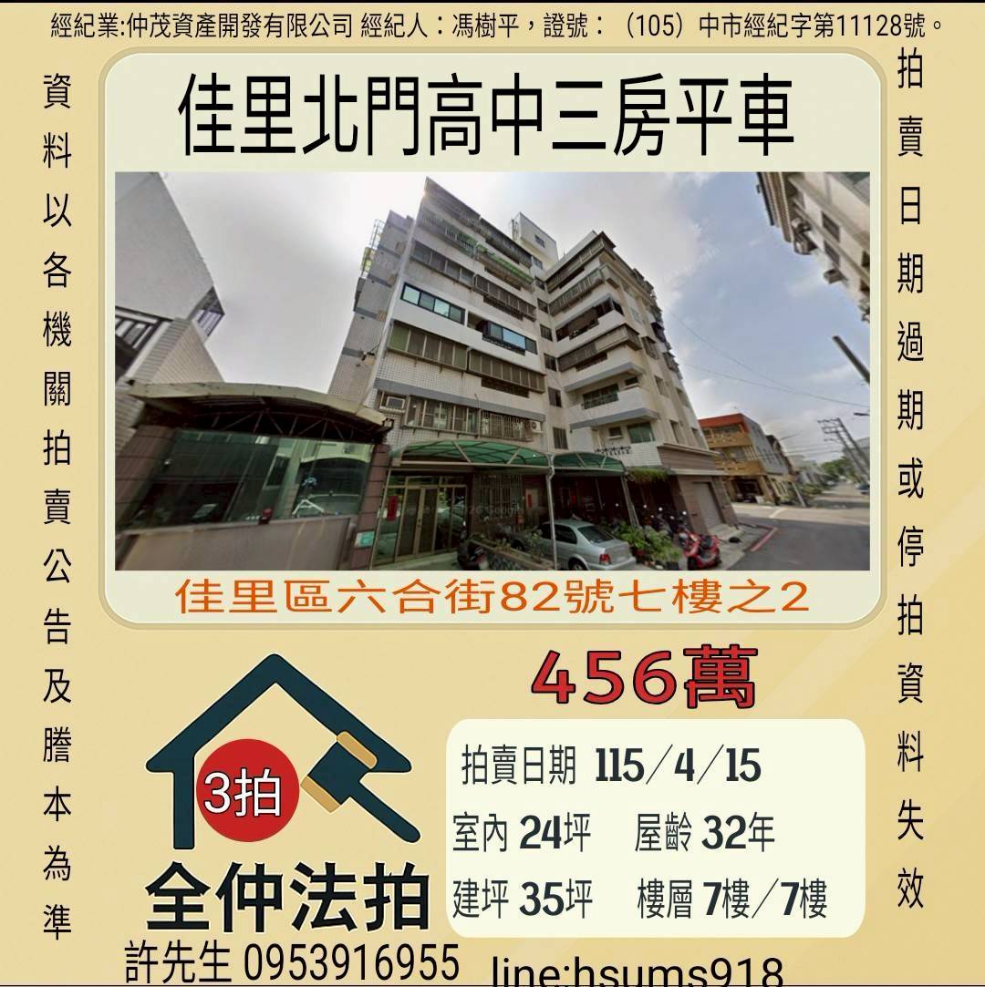 經紀人:馮樹平,證號:(105)中市經紀字第11128號。